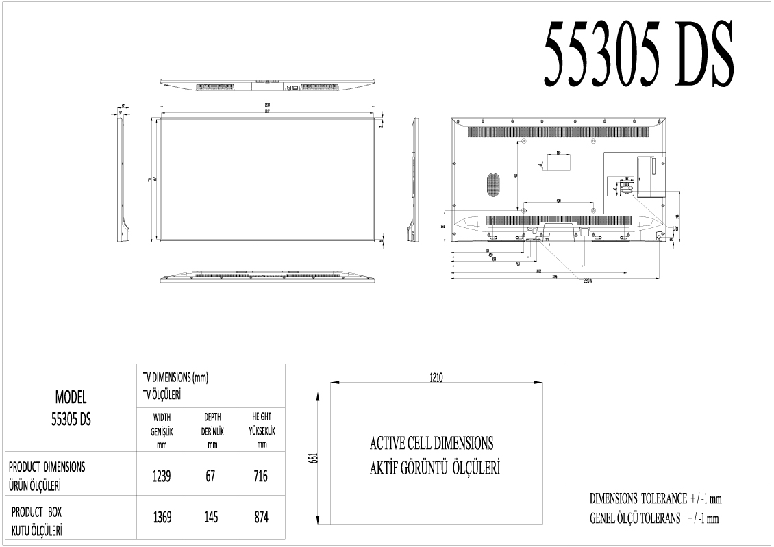 Aktiver Bereich (H x V) 1210 mm (H) X 681 mm (V)