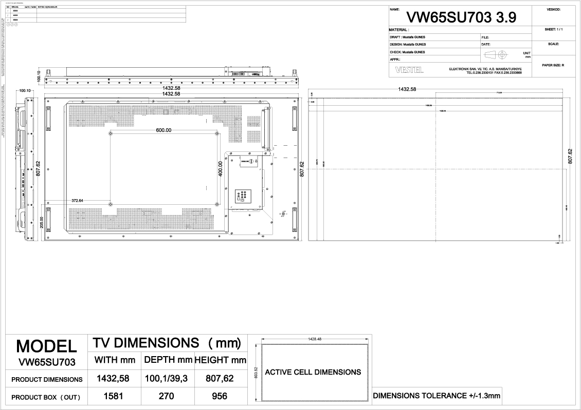 Size 1432.58 (W) x 807.62 (H) x 100.1 (D)
