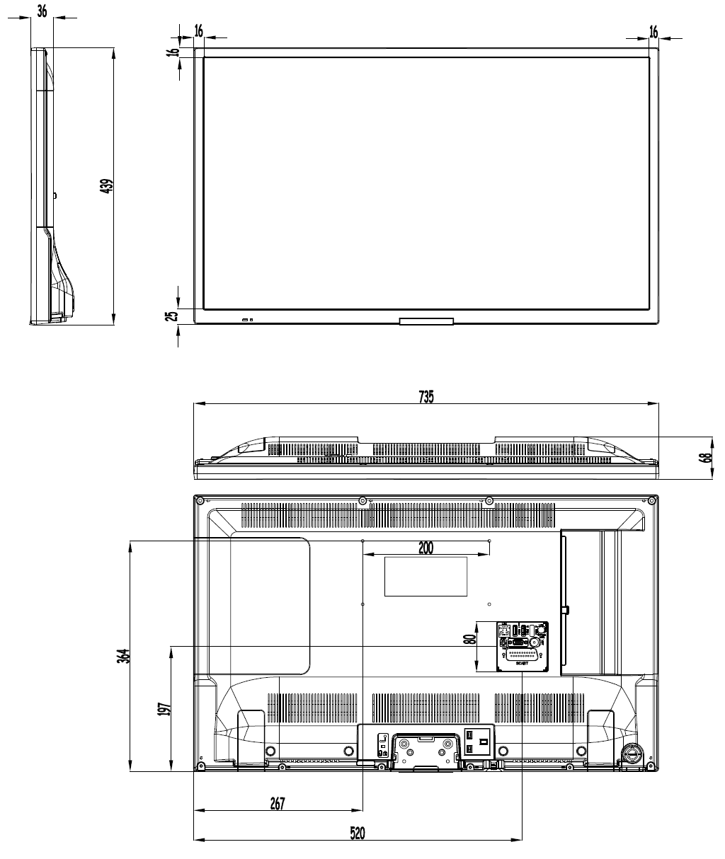 • Interface : HDMI 2.0 / DP 1.2A / USB /RS232 / RJ45 / Audio / Speaker