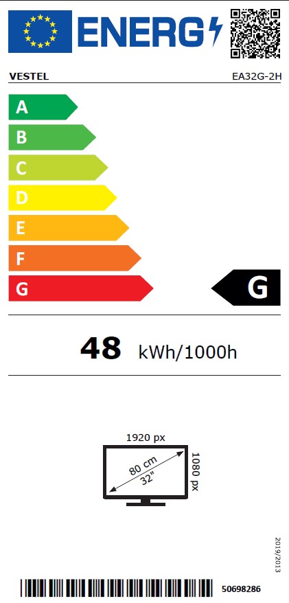 Area attiva (H x V) 698.40 x 392.8 mm